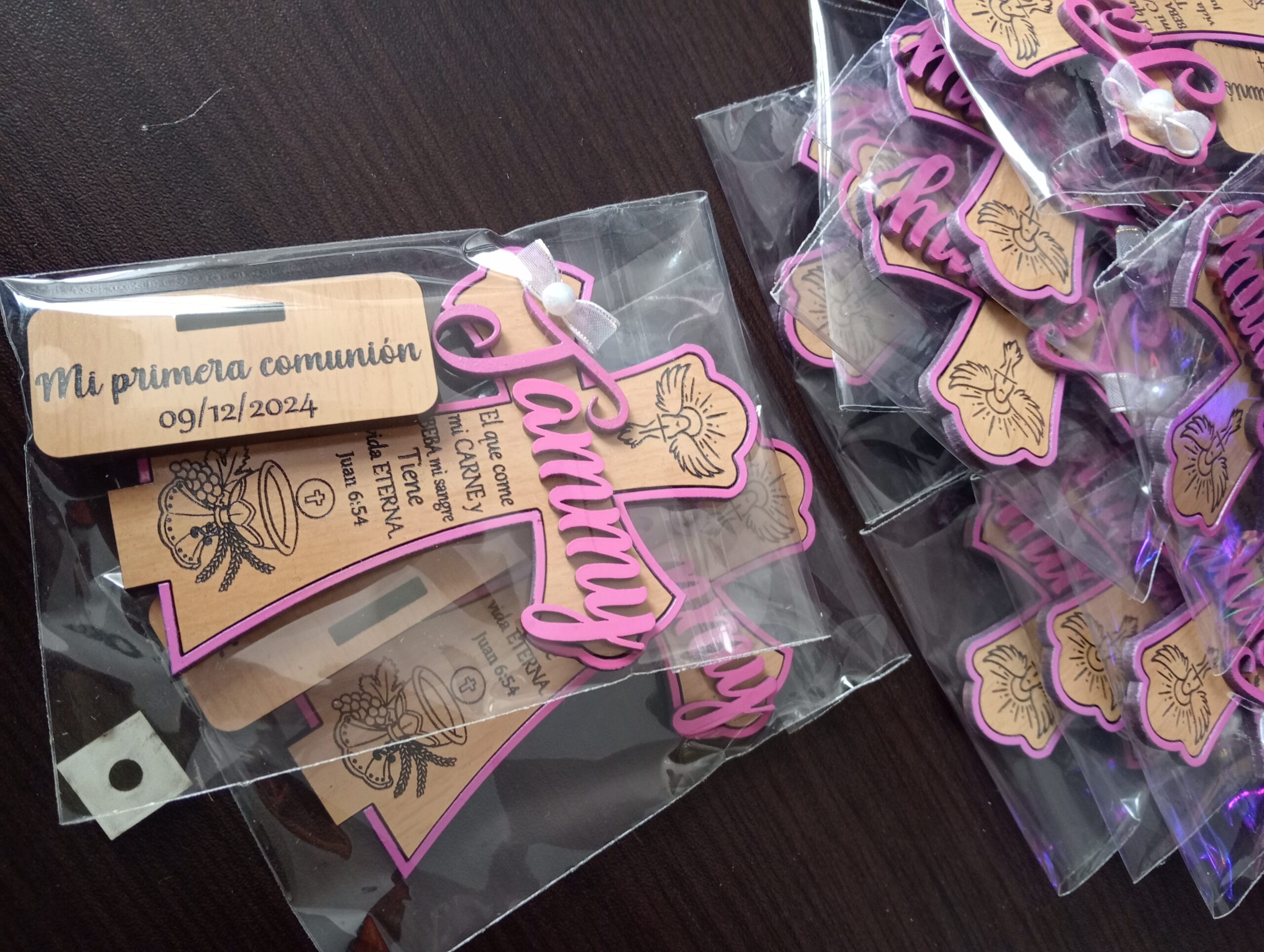 Ideal como recuerdo para invitados en celebraciones de Primera Comunión, eventos religiosos o detalles especiales. Personalizable con nombre y fecha.