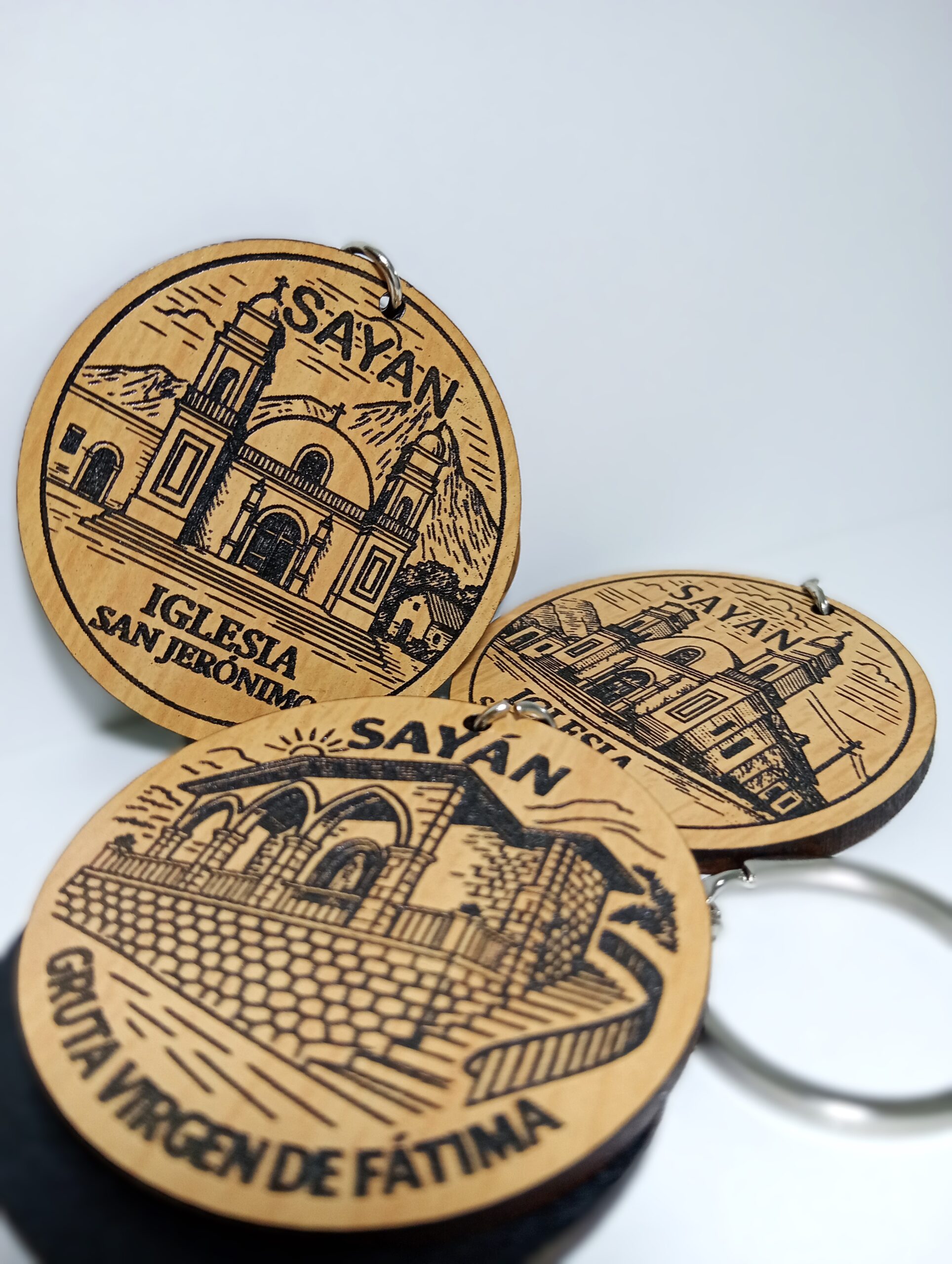 Llavero turístico circular elaborado en MDF Dúrolac de 2.8 mm, con grabado láser profundo y diseño representativo de {Lugar Turístico}. Perfecto como recuerdo artesanal, regalo para turistas o detalle especial para viajeros.